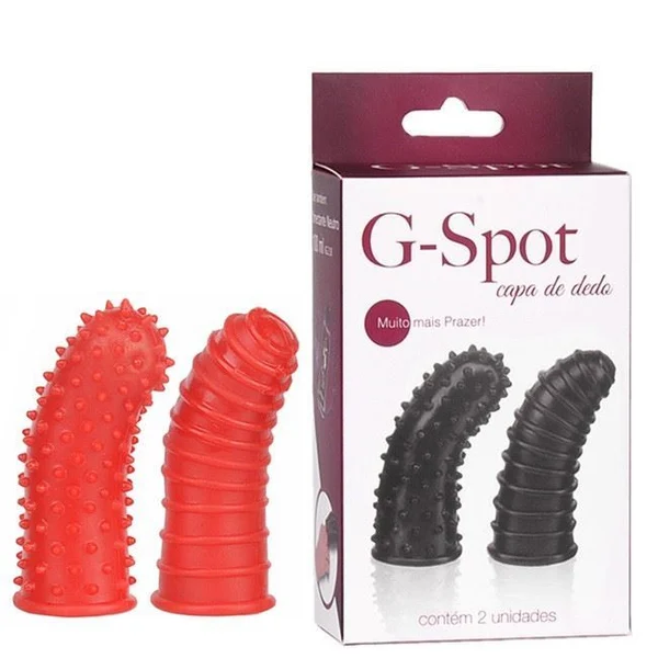 Conjunto composto por 2 capas estimuladoras para dedos feitas de gel, uma com nódulos massageadores e outra com texturas aneladas, ambas com curva na ponta para estimular o ponto G. Super macias, resistentes e elásticas, cabem em qualquer dedo ou em pequeno vibrador. Torne sua massagem muito mais prazerosa.