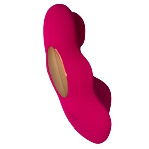 Vibrador de calcinha com linguinha para estimulação do clitóris, compacto com motor de vibração interna controlado por aplicativo. Ideal para estimulação personalizada com praticidade e design anatômico.